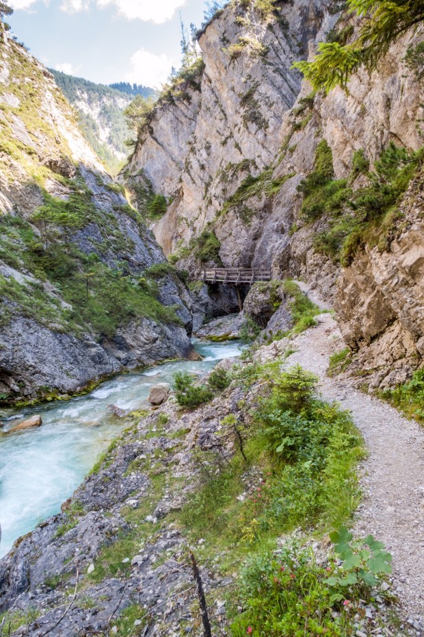 Als wir schon dachten wir sind falsch gegangen, fragten wir nach und bald konnten wir einen ersten Blick auf die Klamm erhaschen: