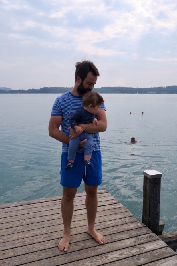 Am nächsten Morgen gibt es nochmal Porridge und wir fahren zum zweiten Kaffee an der Wörthsee, wo wir weil wir so früh dran sind noch nix fürs Parken zahlen müssen. Simon schwimmt eine Runde in dem herrlich klaren Wasser und anschließend wird auf der Wiese noch ein bisschen gekrabbelt und Ball gespielt.