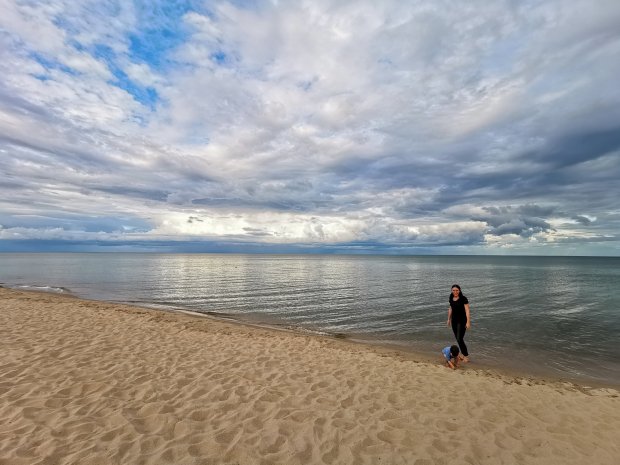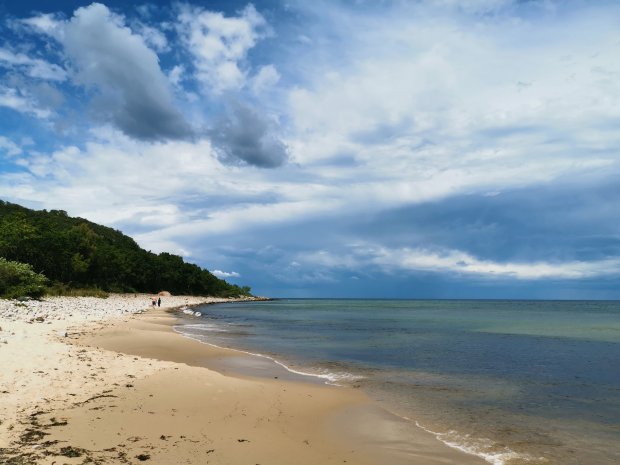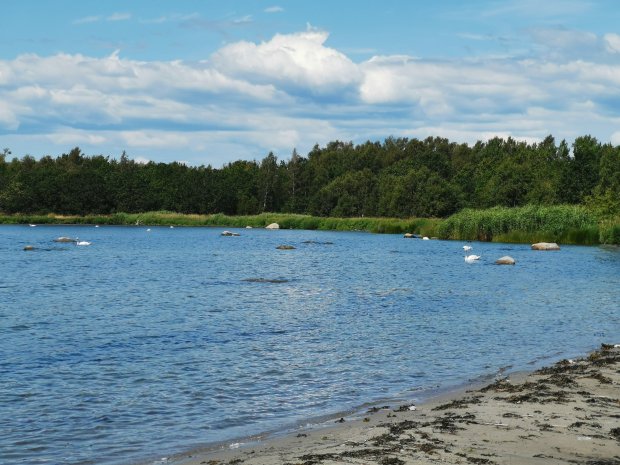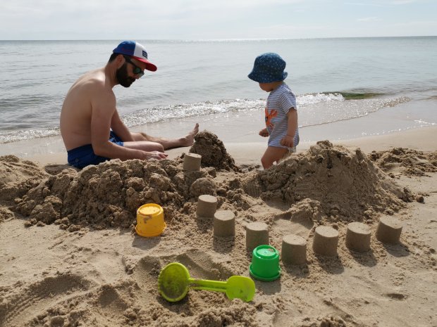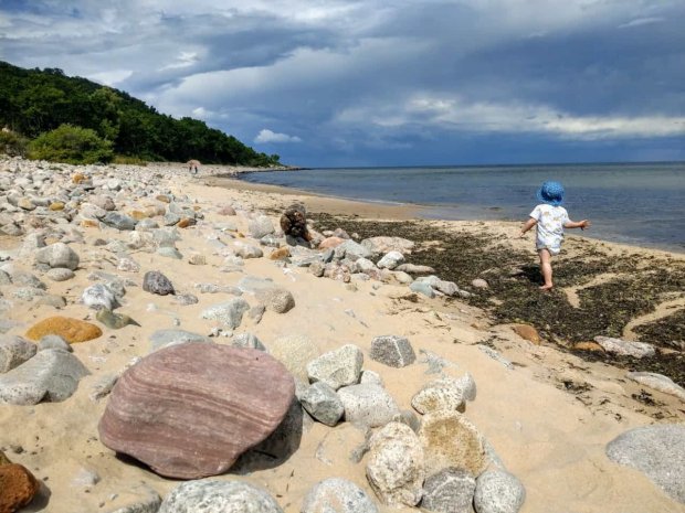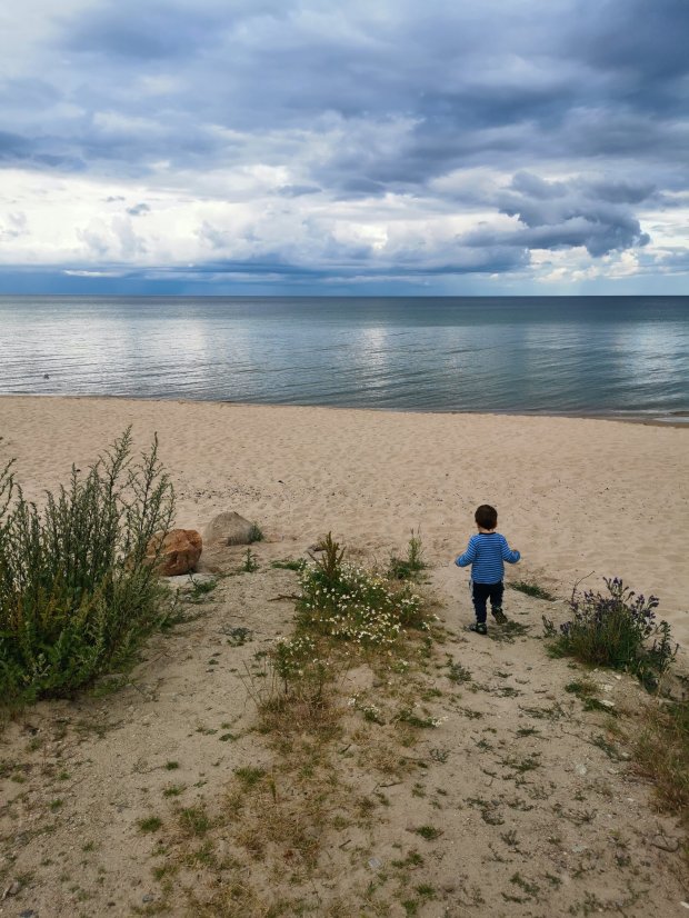 Weit wollten wir nicht mehr kommen, aber Johannes hat noch ein kleines Nickerchen eingeschoben und so sind wir zu einem super Platz an einem mega schönen Sandstrand gekommen. Johannes war dann auch wieder wach und konnte es gar nicht erwarten, nochmal im Wasser rum zu laufen. Verständlich, so klar und schön wie die Ostsee hier ist.