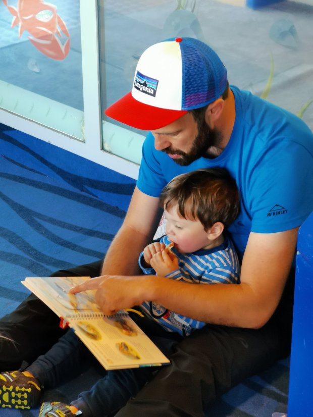Obwohl wir pünktlich um 12 Uhr an der Fähre waren, sind wir irgendwie als letzte und sogar rückwärts draufgefahren. Das wiederum hat uns aber die Pole-Position für die Ankunft in Trelleborg gesichert.Aber vorher mussten wir 4 Stunden Überfahrt überstehen, was ohne Kabine oder Sitzplatz nicht ganz so einfach ist mit einem Kleinkind. Der Kinderbespaßungsraum war relativ klein und eng und außer einer Wippe und einem Tisch mit Malsachen war nichts da. Wir hatten Bücher dabei, aber die Spielzeugautos der anderen Kinder waren viel interessanter.