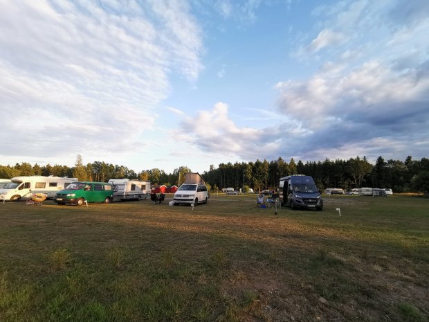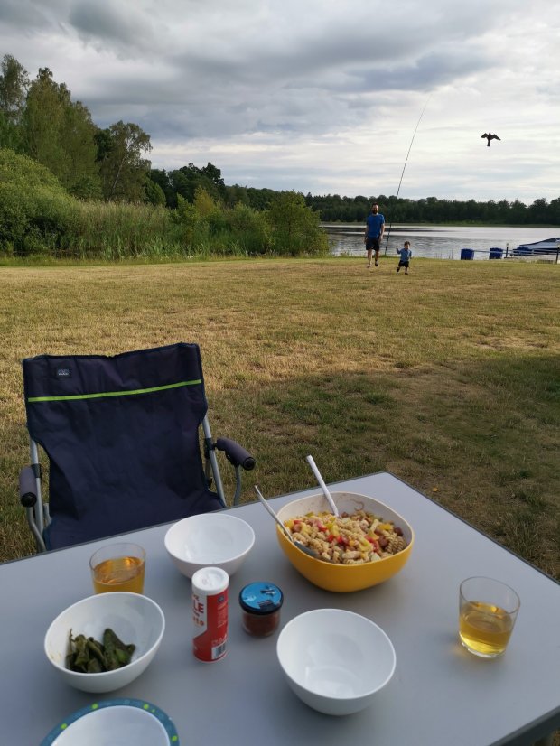 Danach sind wir noch ein paar Kilometer zu einem kleinen Stellplatz am See bei Axeltorp gefahren. Da Johannes wieder unterwegs geschlafen hat, war er länger auf, aber wenn es so lang hell ist, passt das schon. Außerdem haben wir noch einen leckeren Nudelsalat gemacht.