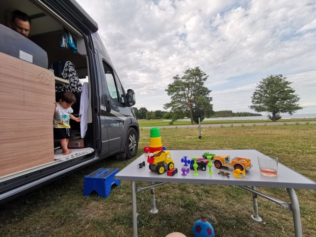 Da es noch nicht sehr spät ist, entscheiden wir uns aber dazu weiter zu fahren und peilen einen kleinen Campingplatz am Meer mit Spielplatz an. (Früher hatten wir noch andere Kriterien für gute Übernachtungsplätze…)