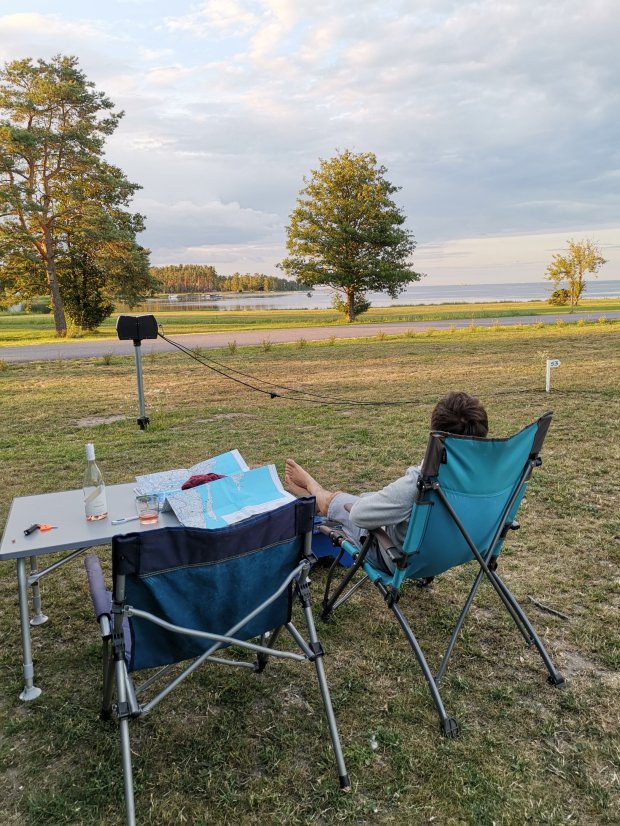 Die Nachbarn sind ausgesprochen nett und wir bekommen viele gute Tipps für unsere weitere Reise. Wir haben uns übrigens entschieden, noch eine Weile im Süden Schwedens zu bleiben, weil es da gerade gutes, warmes Wetter hat und uns sehr gut gefällt.