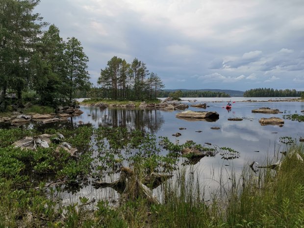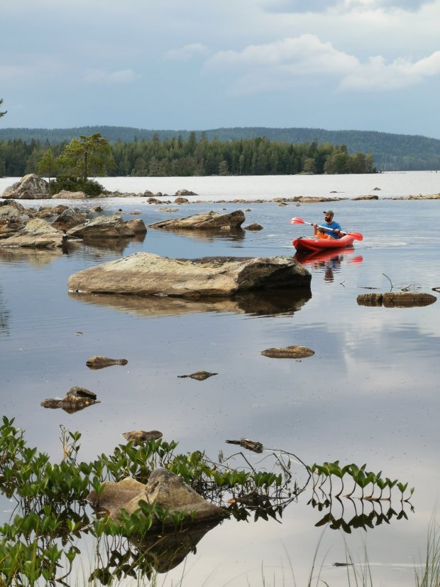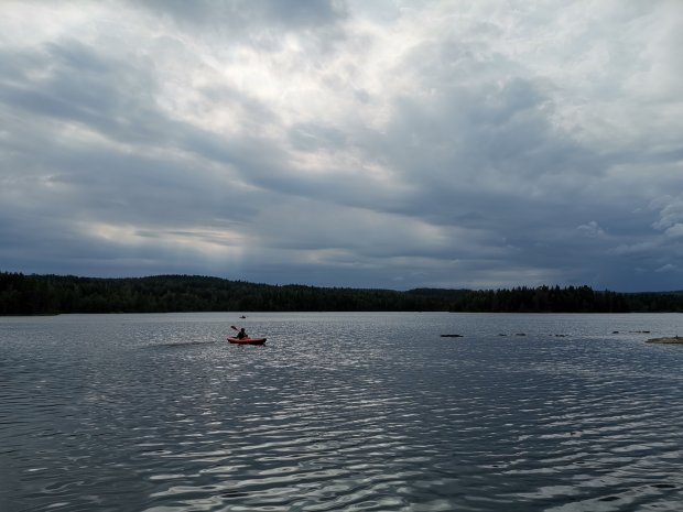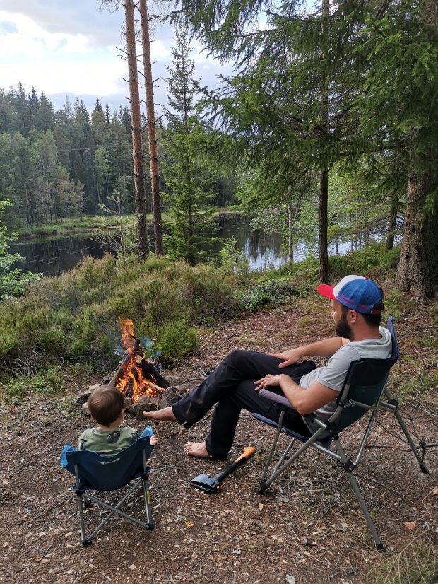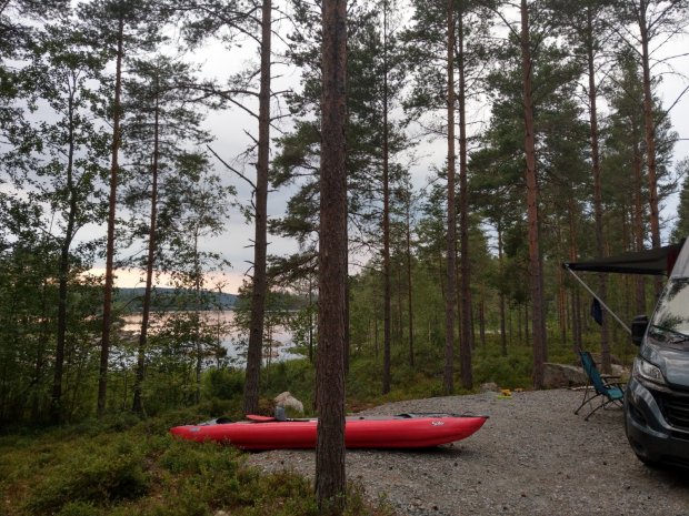 Nach unserem letzten Blogupload fuhren wir von Karlstad aus weiter gen Westen, um zum Glaskogen Naturreservat zu kommen. Über dieses hatte Simon vor einiger Zeit einen Beitrag auf Youtube gesehen, woraufhin er sich übrigens auch für das neue Schlauchboot interessierte. In dem Naturreservat gibt es einen wohl recht bekannten oder zumindest beliebten Natur Campingplatz in Lenungshammer, den wir nach den Freistehnächten zuvor ansteuerten. Leider bekamen wir aber an dem Tag tatsächlich keinen Platz mehr, konnten aber für den nächsten einen richtig tollen reservieren, aber auch nur für eine Nacht. Immerhin wir konnten schonmal das Wasser auffüllen und Abwasser loswerden und suchten uns dann einen Freistehplatz. Nach einer ziemlich ruckeligen Schotterstraßenfahrt, bei der wir ordentlich durchgeschüttelt wurden, fanden wir nach dem üblichen kurzen Hin- und Her einen richtig coolen Platz mit Feuerstelle und Blick auf den See.