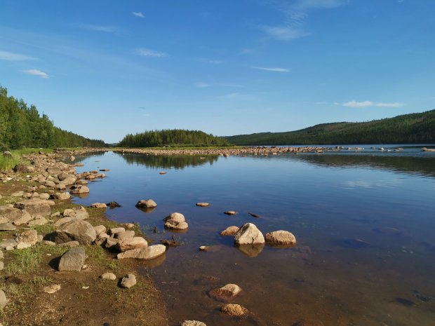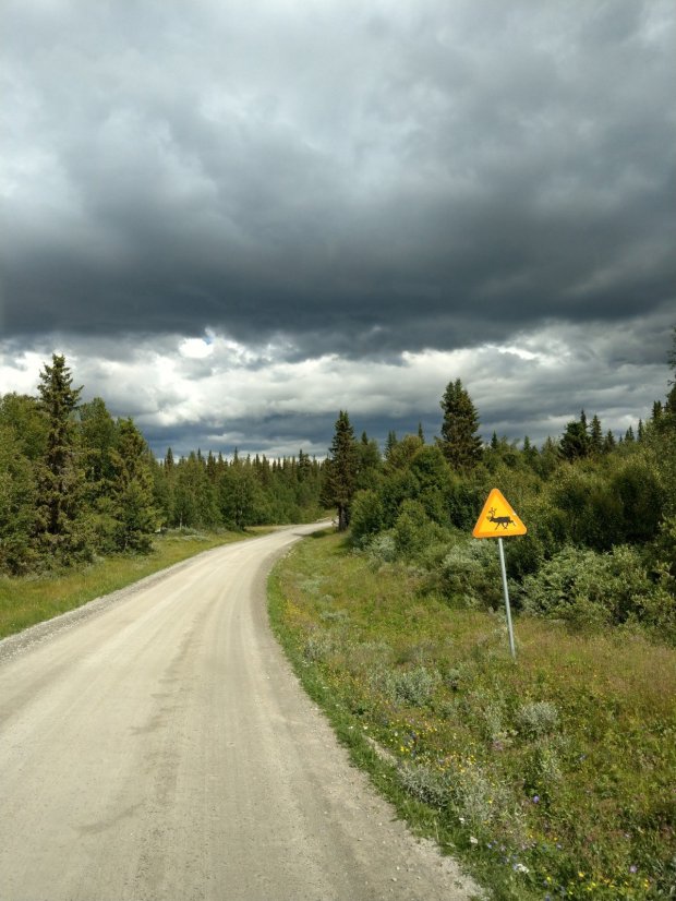 Wir fahren die meiste Zeit auf dem Inlandsvägen E45 und erfreuen uns an der immer wilder und karger werdenden Landschaft. Wälder, Flüsse, Seen, Moore und leider damit einhergehend nun auch massenhaft Moskiten. Dazu später mehr. Für mich hat dieser Teil Schwedens eine alaskanische Weite und Wildheit. Absolut ursprünglich und einfach mega schön. Besonders die Abendlichtstunden auf der Straße sind super, viele Autos sind nicht unterwegs.