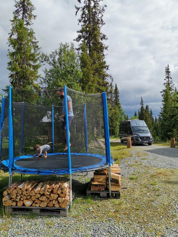 Da es noch nicht so spät war, sind wir noch bis Sveg gefahren und haben uns dort am Badplats zu drei anderen Womos gestellt. Johannes wollte dann noch Planschen und hatte mega viel Spaß im seichten lauen Wasser.