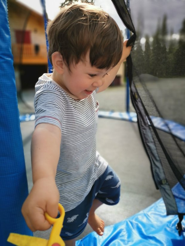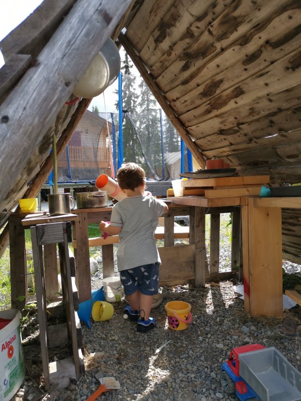 Das Anwesen mit dem Stellplatz ist noch relativ neu sag ich mal und schön gemacht. Die deutschen Besitzer waren gerade selber aber nicht da, so dass Johannes die mega Outdoor Spielküche, das Trampolin und die Rutsche ganz für sich alleine hatte.