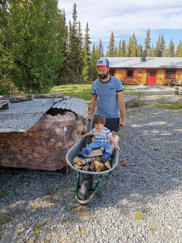 Erst wollte Francesco mit uns zum Muddus Nationalpark kommen, aber hat dann seine Pläne doch geändert und uns kurz nach Jokkmokk am Abzweig zum Sarek Nationalpark verlassen. Vorher hat er aber noch Simon seine alte Jeans geschenkt, und sich auch nicht davon abbringen lassen.