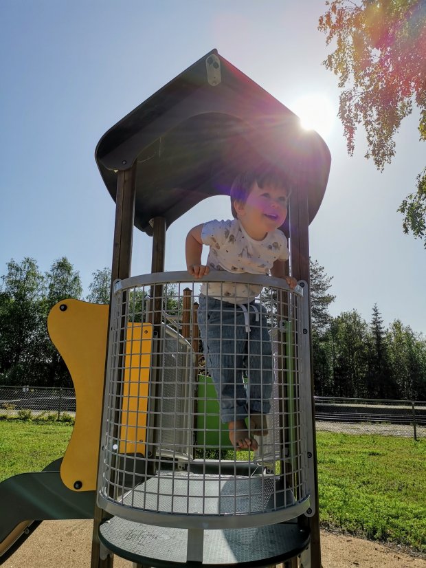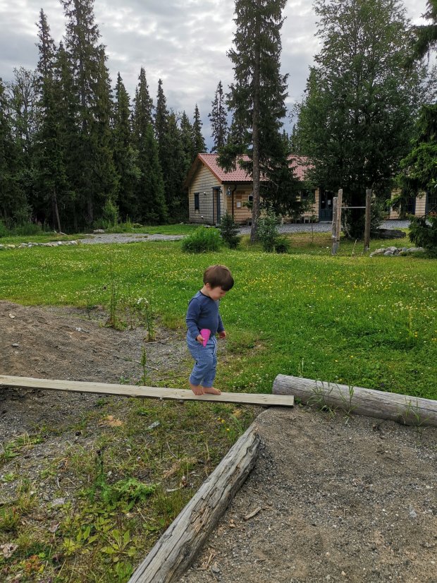Am nächsten Morgen waren wir früh auf und mussten aber noch die restliche Wäsche trocknen und ein bisschen die Zeit tot schlagen, bevor es um halb 11 wieder losging, erst mal grob Richtung Östersund. Ein bisschen weiter nördlich ergab sich nachmittags ein Zwischenstop an einem Freibad mit Spielplatz, ideal bei den doch deutlich steigenden Temperaturen. Johannes hat sich selbst sein Eis bestellt.