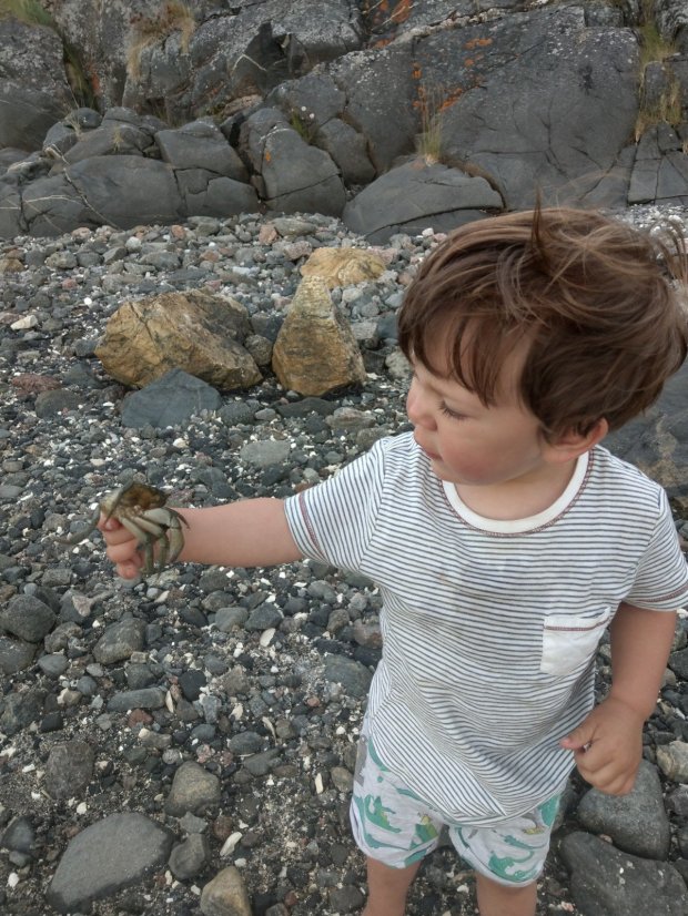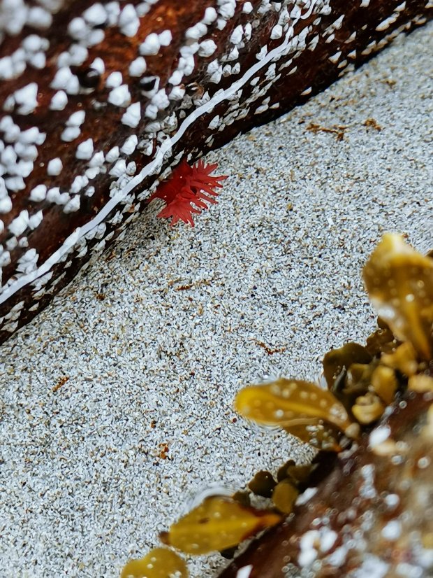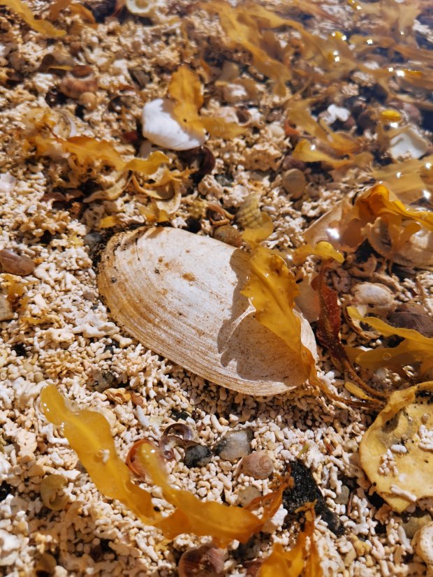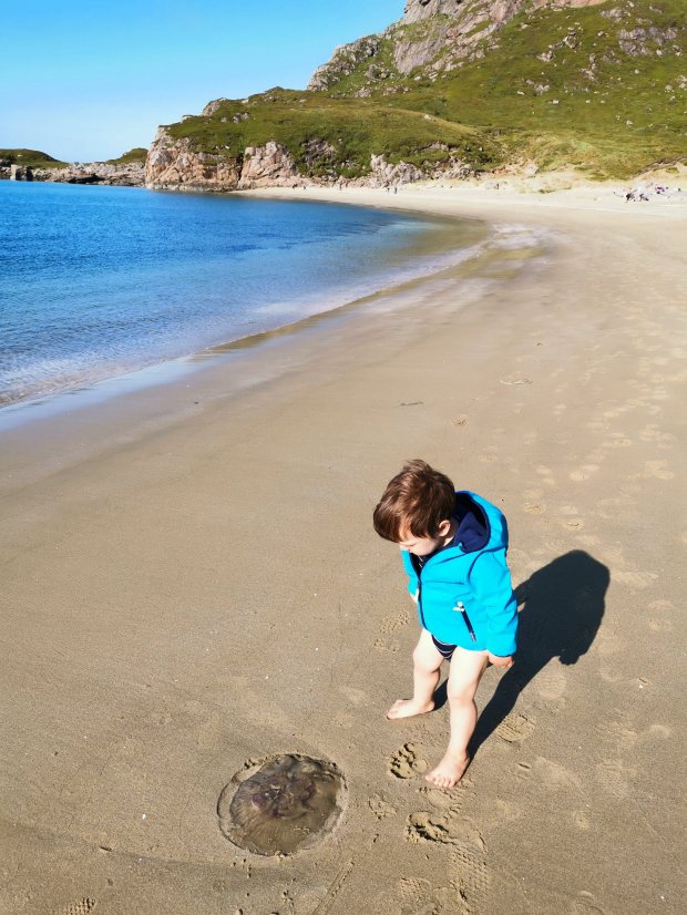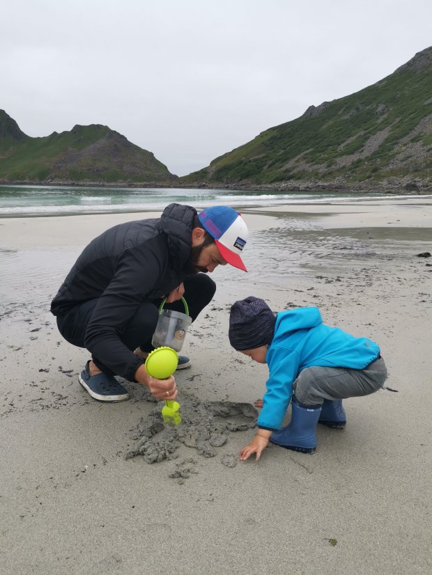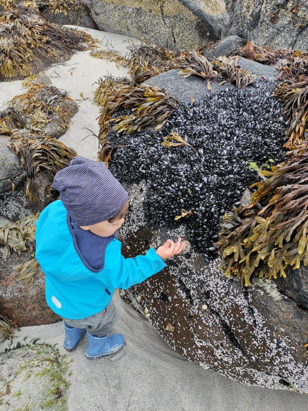 Nachdem Johannes nur ein nicht allzu langes Schäfchen gemacht hat, geht er etwas früher ins Bett. Diese Nacht heizen wir ein bisschen. Am nächsten Morgen sind wir dann früh auf und erkunden zunächst zu dritt wieder den Strand bei Ebbe.