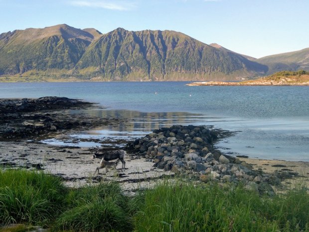 Die zwei Rentiere sind dauernd in der Gegend und schlafen sogar am Strand. Auch am nächsten Morgen sind sie noch da.