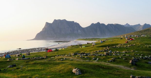 Wirklich ein toller Strand! Der Parkplatz und die Wiesen füllten sich zwar langsam, aber es war bei weitem nicht so überlaufen wie am Haukland Strand auf der gegenüberliegenden Seite des Berges.