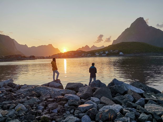 Lisa und Emba angeln noch ein wenig und wir stoßen dann auf unseren letzten gemeinsamen Abend und für uns auch letzten Abend auf den Lofoten an.