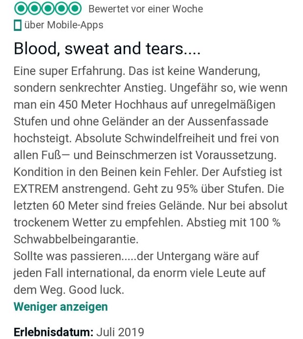 Unten angekommen hat man aber richtige Wackelpuddingbeine. Hier mal eine sehr treffende Beschreibung der Tour, gefunden auf TripAdvisor: