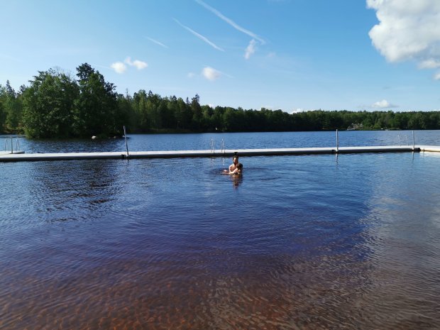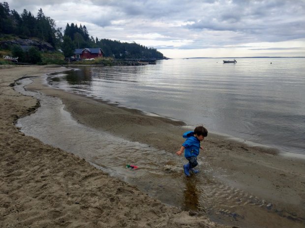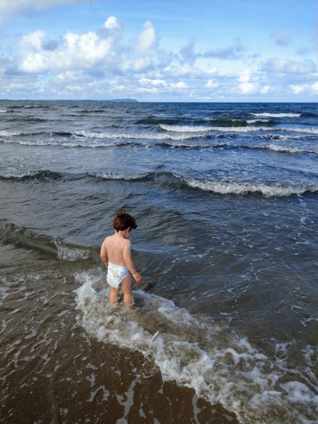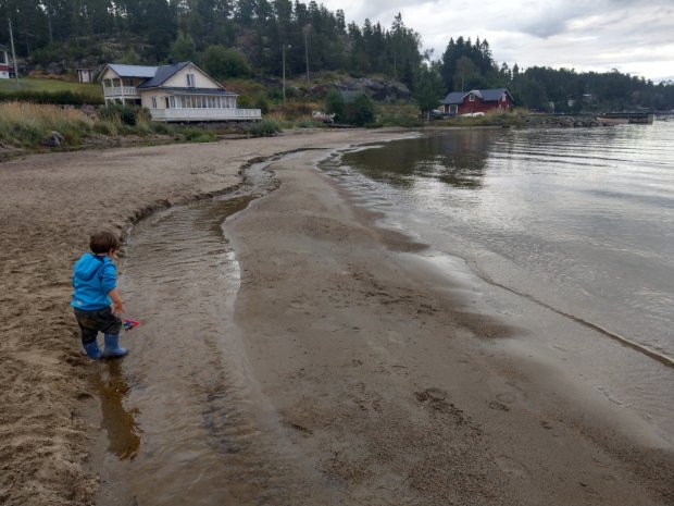 Johannes kann es mal wieder kaum erwarten, nass zu werden, aber es ist doch relativ windig und kühl, so dass wir nicht ganz so lange bleiben, wie geplant.