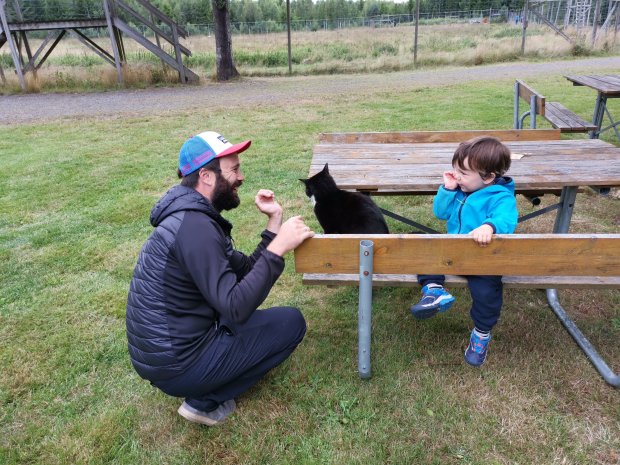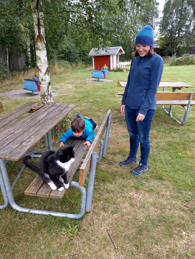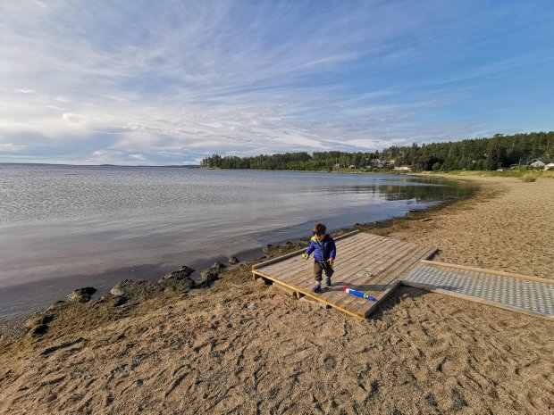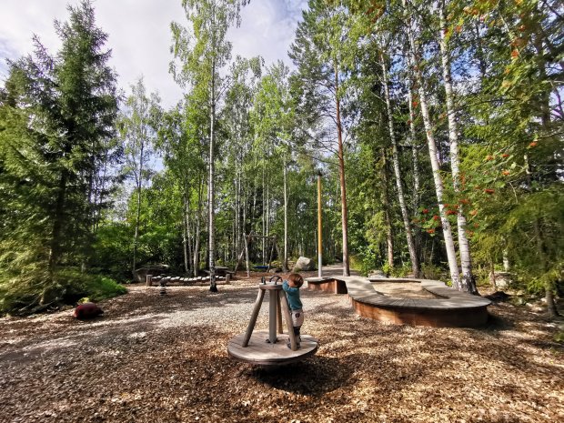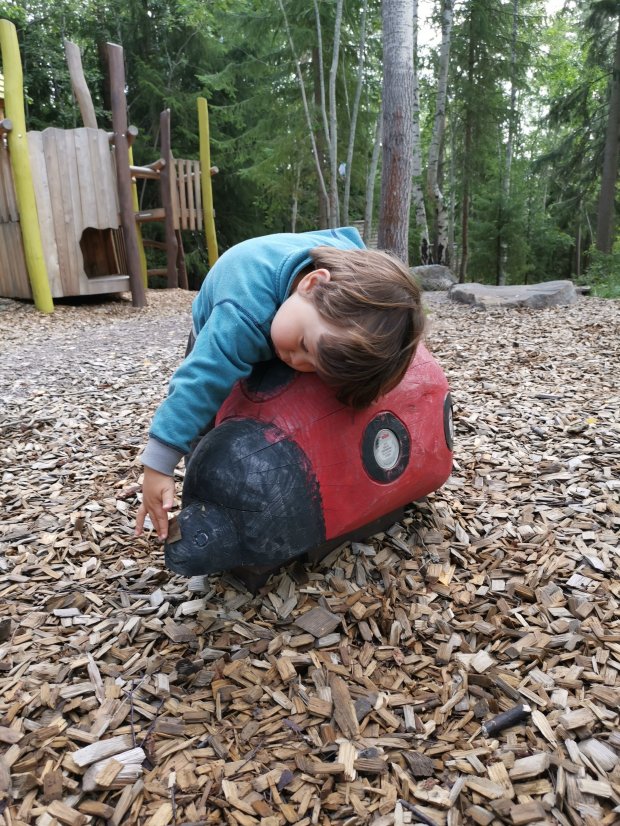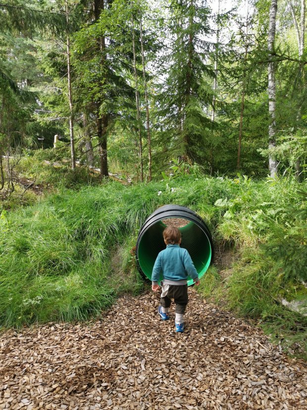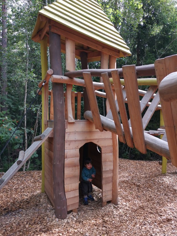 Wir peilen einen Natur Spielplatz unweit der Autobahn in Sundsvall an, der wirklich cool ist und Johannes kann sich richtig austoben.