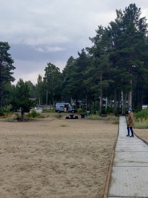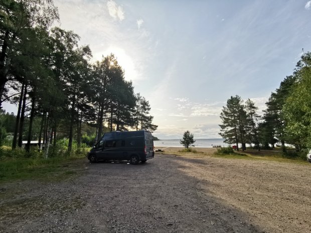 Am nächsten Tag schaffen wir sehr viele Kilometer und erreichen wieder das Meer. Wir übernachten auf einer Insel östlich von Sundsvall am Strand.