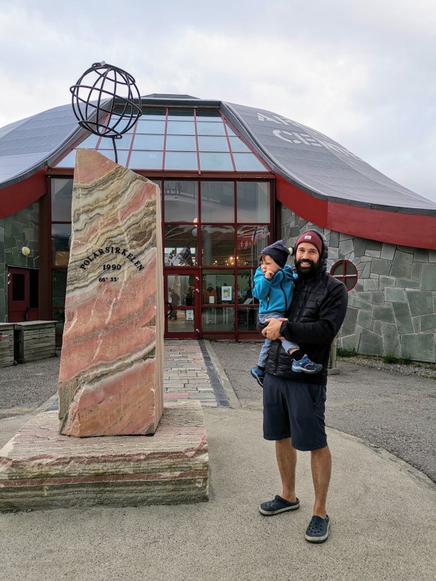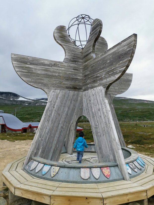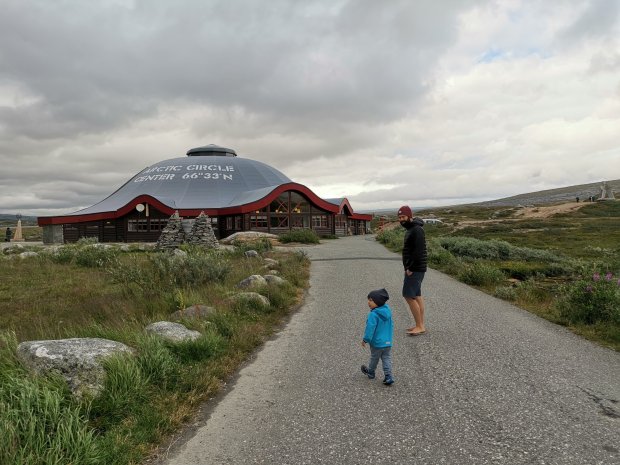Dann ging es weiter durch eine spektakuläre Fjell-Landschaft bis zum Polarkreis Zentrum, wo wir wieder einen Stop einlegten. Das Wetter passte zur Kulisse.