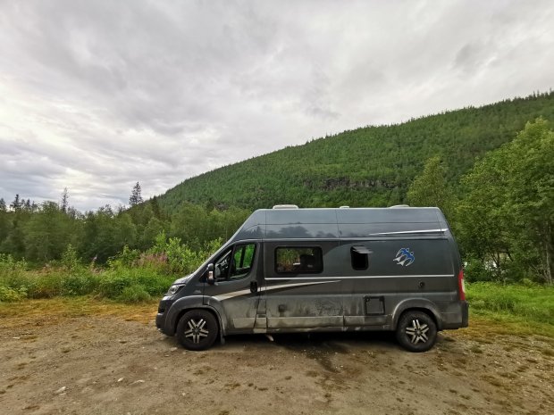 Das Wetter war nicht mehr so schön wie auf den Lofoten und wir ließen den Sonntag gemütlich angehen. Unser Plan war es, Nord-Norwegen ein Weilchen zu erkunden und auch über Norwegen wieder runter gen Heimat zu fahren.