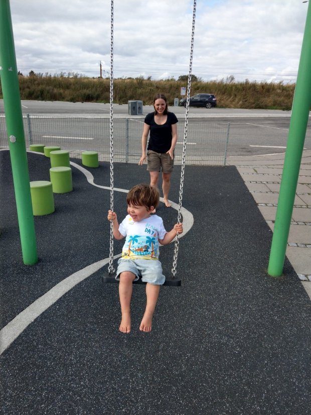 Wir wollten am späten Nachmittag bis Odense kommen, wo meine Cousine mit ihrer Familie gerade Urlaub machte. Die Fahrt war allerdings relativ lang und stressig, weil um Kopenhagen herum sehr viel Verkehr war. Zum Glück fanden wir wieder Rastplätze mit Spielplatz zum Auspowern.