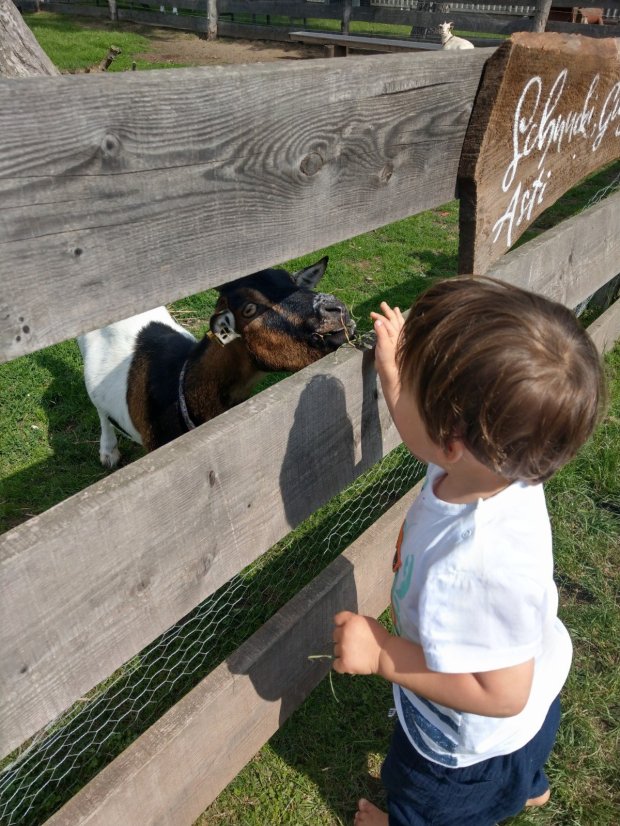 Dann hieß es aber Abschied nehmen, denn es lagen noch über 850 Kilometer Heimweg vor uns. Weit kamen wir erstmal nicht, weil Johannes nach wenigen Kilometern unbedingt nochmal raus wollte und wir deshalb Pause an einem Obst und Gemüse Hof mit Ziegen machten.