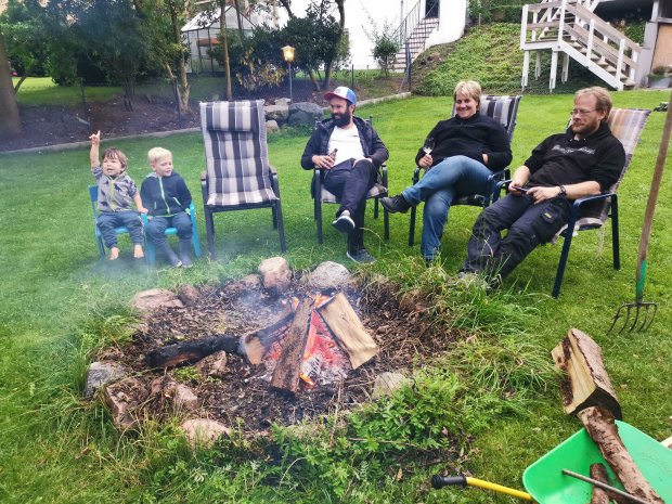 In dem tollen riesigen Garten machten wir sogar ein Lagerfeuer mit dem Holz, das wir noch seit den Lofoten mit herum fuhren.
