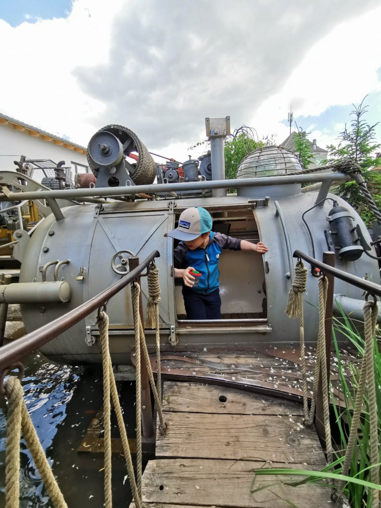 Irgendwann brechen wir dann aber doch auf, weil wir ja nach Furth im Wald zur Erlebniswelt Flederwisch weiter wollen. Die kennt Simon von einem Ausflug mit Schülern und wir dachten, es könnte für Johannes ganz cool und spannend sein. Ist es auch. Aber auch für Elena und mich. Ein toller Garten mit ganz vielen Kuriositäten zum Entdecken und die geführte Tour machen beide auch super mit. Leider wird die große Dampfmaschine am Feiertag nicht vorgeführt. Dafür das Papiermachen, die Schmiede und die Transistormaschine (?).