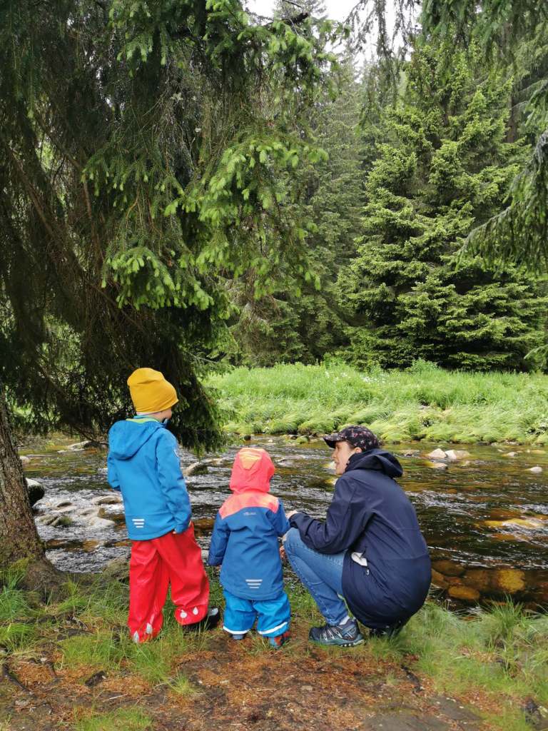Ein Regentag. Aber wir wollen eh weiterfahren. Also suchen wir nach dem Frühstück unsere Sachen bei der Oma zusammen und fahren nach Regen, wo wir kurz im Regen am Regen entlang spazieren und noch einen dm und Edeka Einkauf erledigen, bevor wir weiter fahren nach Bayerisch Eisenstein und dort spontan zum späten Mittagessen einkehren. Simon und Johannes schauen sich danach sogar noch das Lokmuseum nebenan an, Elena und ich bleiben im Womo und lesen.