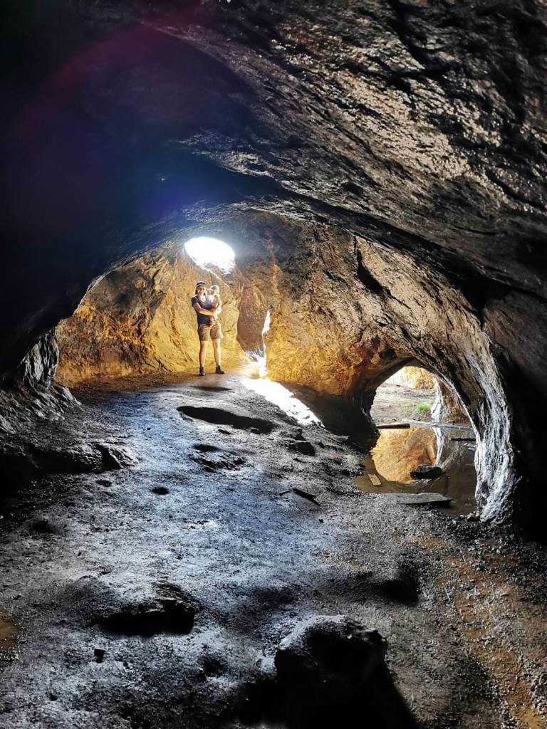 Wir steigen ab zur Mittelstation (bei so einem kleinen Berg ein etwas übertriebener Begriff) und erkundigen uns nach einer Bergwerksführung. Die dauert allerdings 45 Minuten und das ist uns dieses Mal zu lang und zu kalt, also essen wir lieber erst mal ein Eis und trinken was. Der freundliche Mann an der Kasse konnte uns auch erklären, wo wir anschließend die frei zugängliche Höhle finden würden, auf die wir uns schon besonders gefreut hatten.