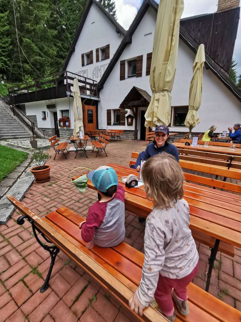 Wir machen einen Spaziergang durch den Wald hoch zum alten Schwemmkanal und kehren auf ein Getränk in einem kleinen Restaurant ein. Die Speisekarte gibt es leider nur auf Tschechisch und das E-Netz reicht nicht aus, um mit Google irgendwas zu übersetzen. Vielleicht kommen wir am nächsten Tag zum Mittagessen wieder und nehmen vorher einen Telefonjoker zu Hilfe.