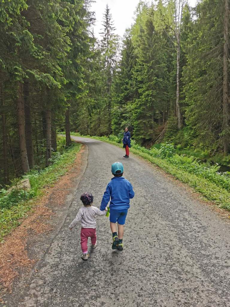 Zeitgleich mit uns startet auch eine vierköpfige spanische Familie mit zwei Mädchen den Rundweg und so hat Johannes sofort eine Freundin, mit der er die Tiere und den Wald erkundet und mit der das wandern gleich viel mehr Spaß macht.