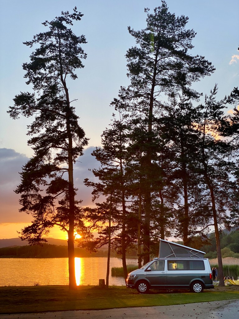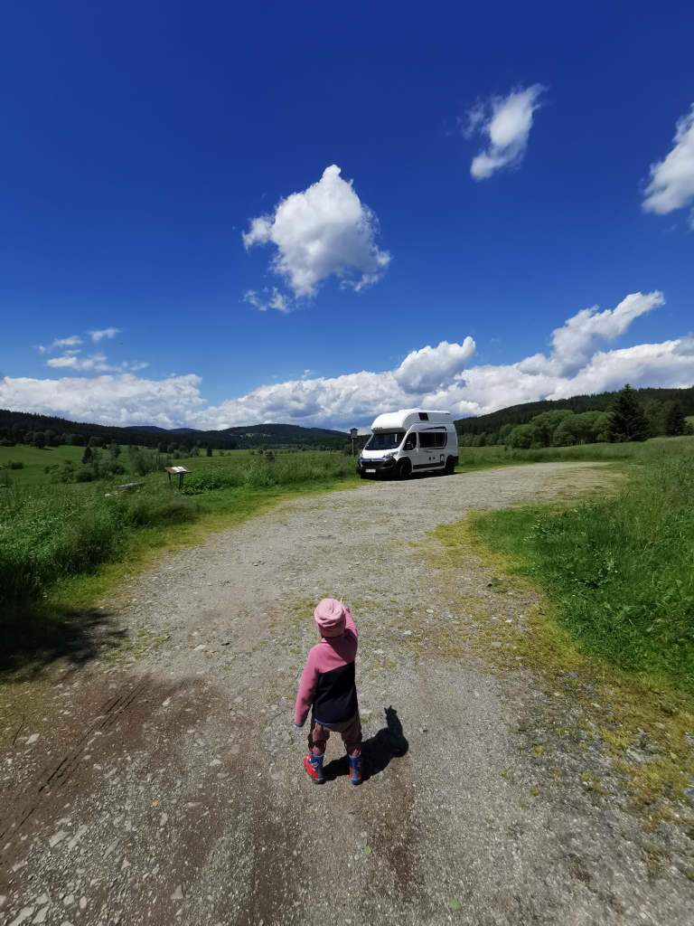 Definitiv ein Urlaubshighlight für uns alle. Vor allem scheint hier ja normalerweise echt die Hölle los zu sein, soviele Parkplätze wie es hier gibt. Um 20:15 sind wir wieder am Bus und machen die Kinder noch „bettfertig“, bevor wir losfahren Richtung Neuschönau. Unterwegs drehen wir die Lüftung voll auf und öffnen die vorderen Fenster und können so zum Glück viele der kleinen Stechbiester loswerden. Die restlichen mache ich mit einem Taschentuch platt.