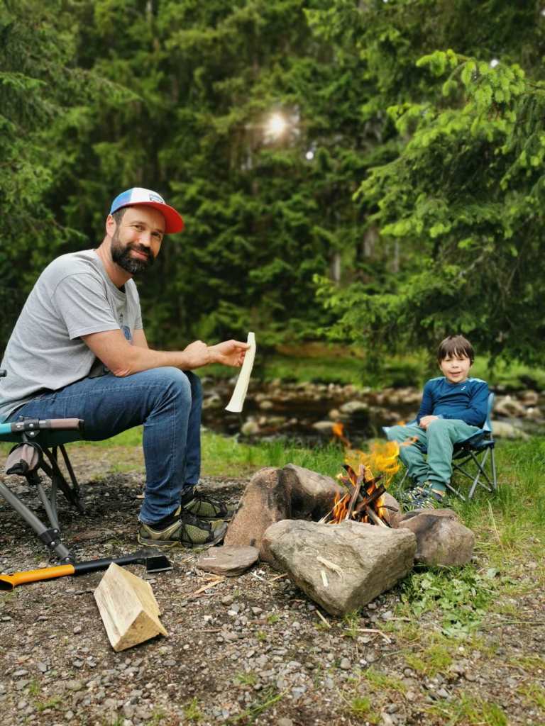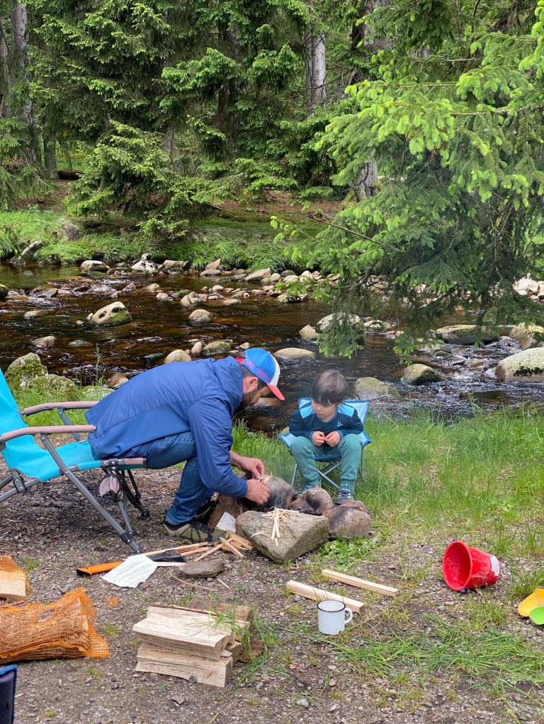 Unser spezieller Platz ist wirklich vielleicht sogar der schönste am ganzen Campingplatz und wir beschließen bis Montag zu bleiben, hoffen allerdings ein bisschen, dass der Platz sich Sonntag nachmittags wieder etwas leert. Johannes würde am liebsten noch 4 Tage bleiben sagt er. Heute ist er aber sehr müde vom vielen Steine springen und wir verschieben das nächste Lagerfeuer auf Sonntag.