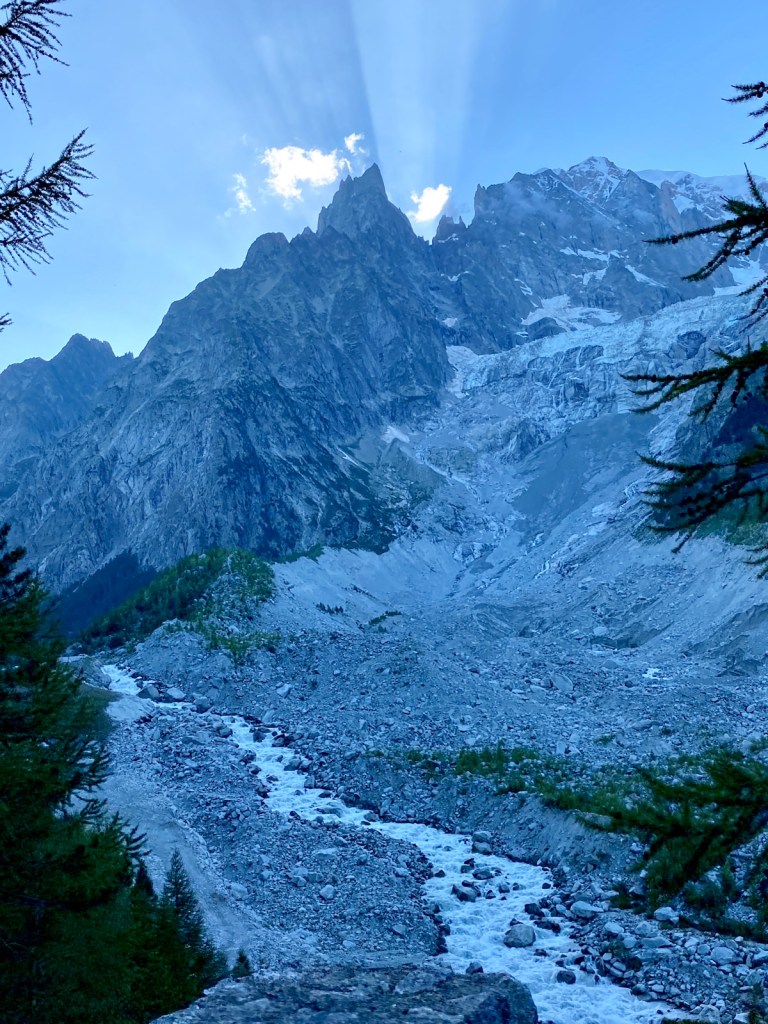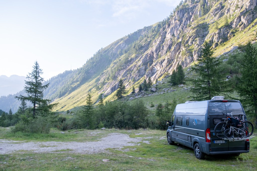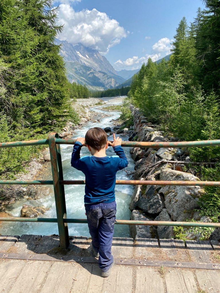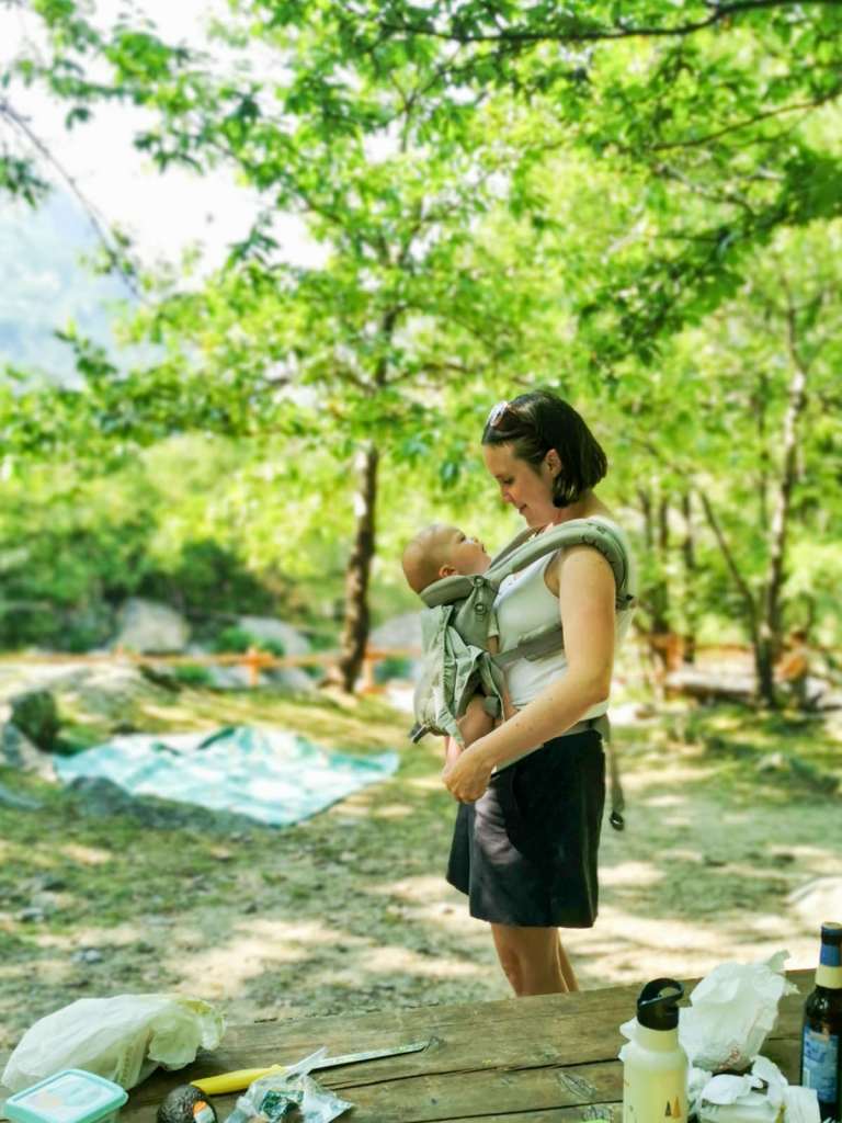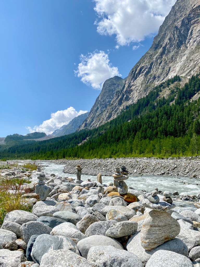 Am 18. August fuhren wir dann weiter Richtung Val Veny im Aostatal, wo wir telefonisch noch einen letzten Platz auf einem der drei Campingplätze unterhalb des Mont Blanc Massivs ergattert hatten. Auf dem Weg dorthin hatten wir mal wieder riesiges Glück beim Pausenplatz suchen und entdeckten einen Fluss mit Badegumpen und Picknickareal nebendran. Perfekt!
