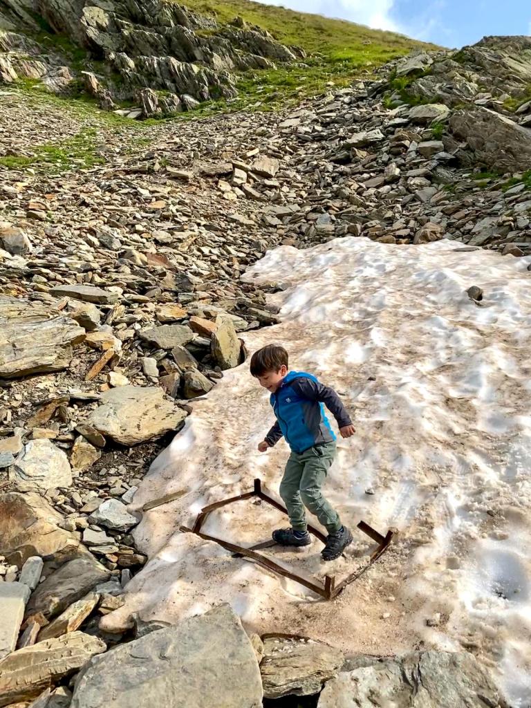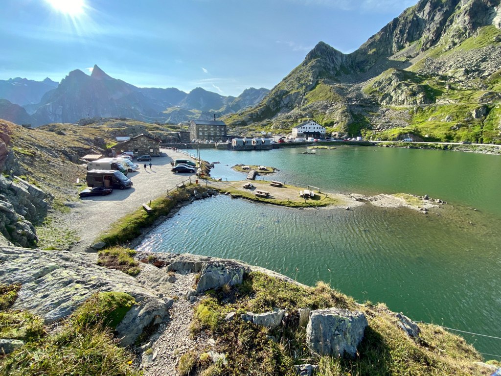 Um wieder in die Schweiz zu gelangen, entschieden wir uns, ein Stück zurück nach Aosta und dann hoch über den Großen Sankt Bernhard Pass zu fahren. Dort ist hinter der kleinen Bar ein Parkplatz, auf dem man wenn man nachfrägt und ein paar Bierchen und Eis konsumiert auch übernachten darf. Super cool! Was für ein genialer Platz und sowohl nachmittags als auch am nächsten Morgen haben wir die Umgebung um den See und den Pass genauer erkundet und sogar ein Schneefeld entdeckt.