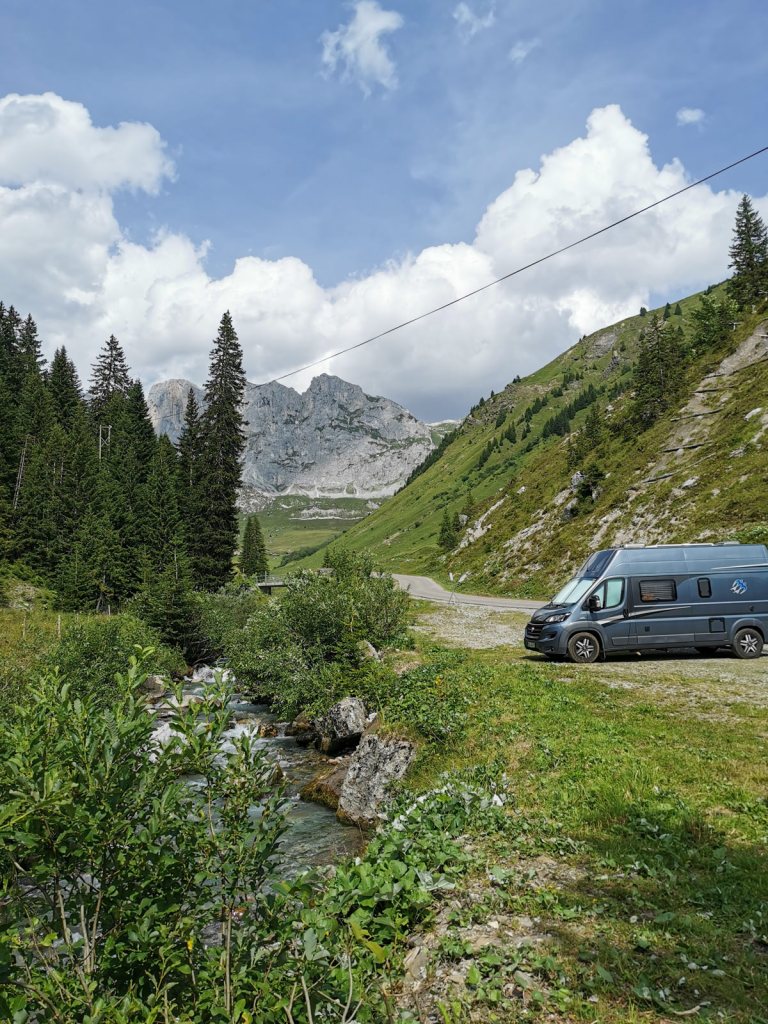 Weiter geht es dann noch den Pass hinunter und ein gutes Stück durchs Tal, bis wir am „Fuße“ des Nufenenpasses unseren Nachtplatz fanden. Die kleinen Bäche rundrum sind perfektes Erkundungsgelände für Johannes und die Straße ist nachts kaum befahren.