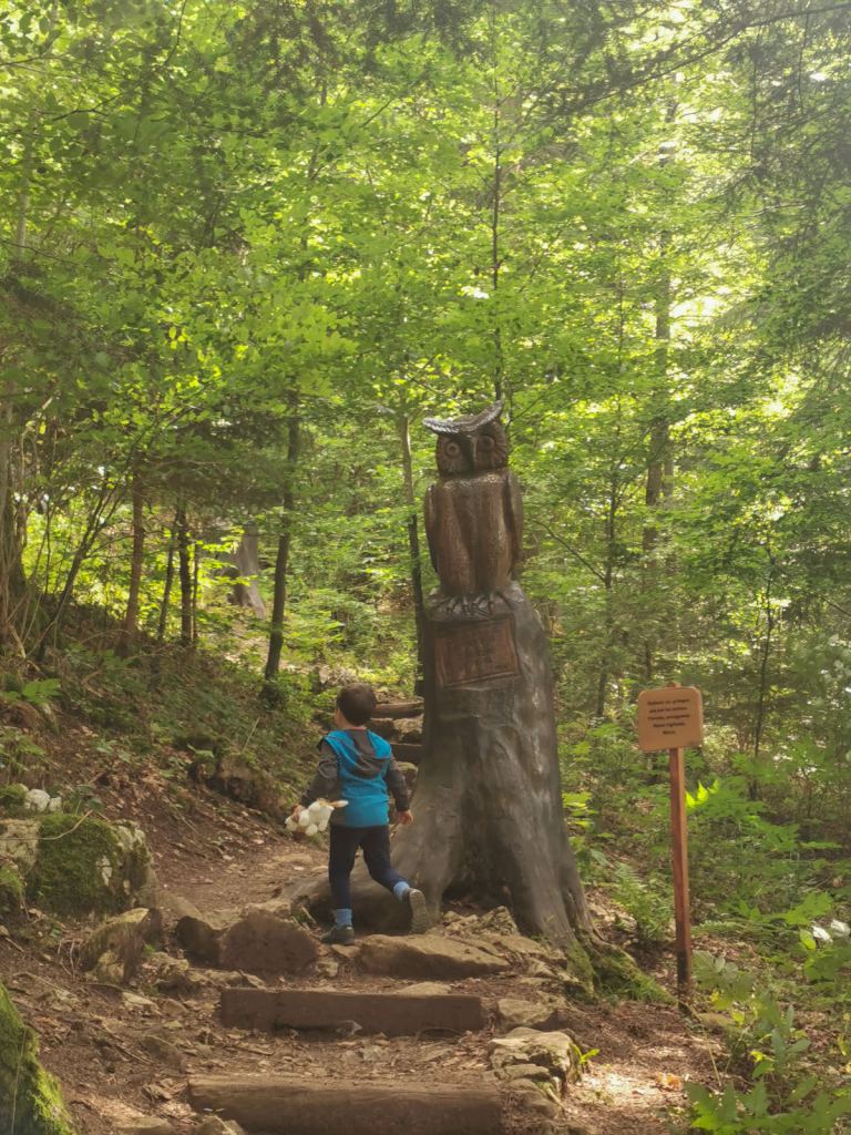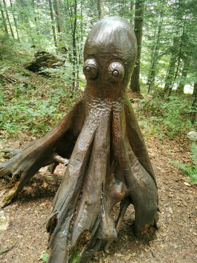 Weiter ging es dann am 24. August nach La Sagne zum Sentier des Statues, einer Wanderung mit lauter geschnitzten Holzfiguren, ganz nett. Allerdings wurde dann oben das Wetter schlechter und die Kühe waren etwas zu aufdringlich für unseren Geschmack und wir mussten einen längeren Abstiegsweg wählen. Wir konnten aber unten direkt auf dem Parkplatz beim Fußballplatz übernachten, wo es auch einen Spielplatz gab.