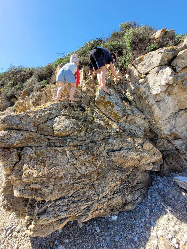 In der Nacht hat es gewindet und geregnet und auch in der Früh kam noch der ein oder andere Schauer durch. Aber nach dem Frühstück waren die Bedingungen ideal für einen schönen Strandspaziergang mit Kletterpartie, bevor wir wieder aufbrachen in Richtung Orsolei. Dort ging es schnell in den Supermarkt und anschließend direkt vor an Strand zu einem kleinen Mittagessen und bisschen Auslauf.