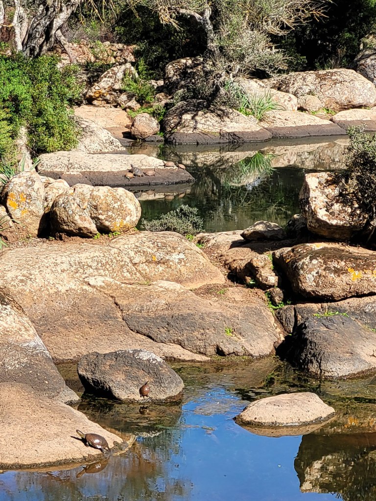 Das Wetter ist super und wir verbringen den ganzen Vormittag bei den Eseln, Schweinen und Schildkröten! J ist seelig, er wollte schon lange „wilde“ Schildkröten in freier Natur sehen.