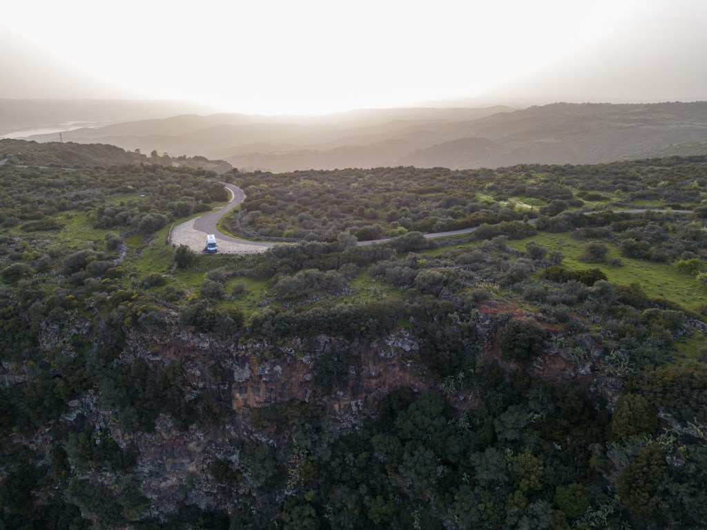 Danach ging es hoch in die Berge durchs Gennargentu Massiv, vorbei an der Gorropuschlucht, in die wir 2019 schon mal hinter gewandert sind. Die Straße schlängelt sich in vielen Kurven auf bis zu 760m hoch und die Aussicht über die Berge und Wälder ist wirklich super.