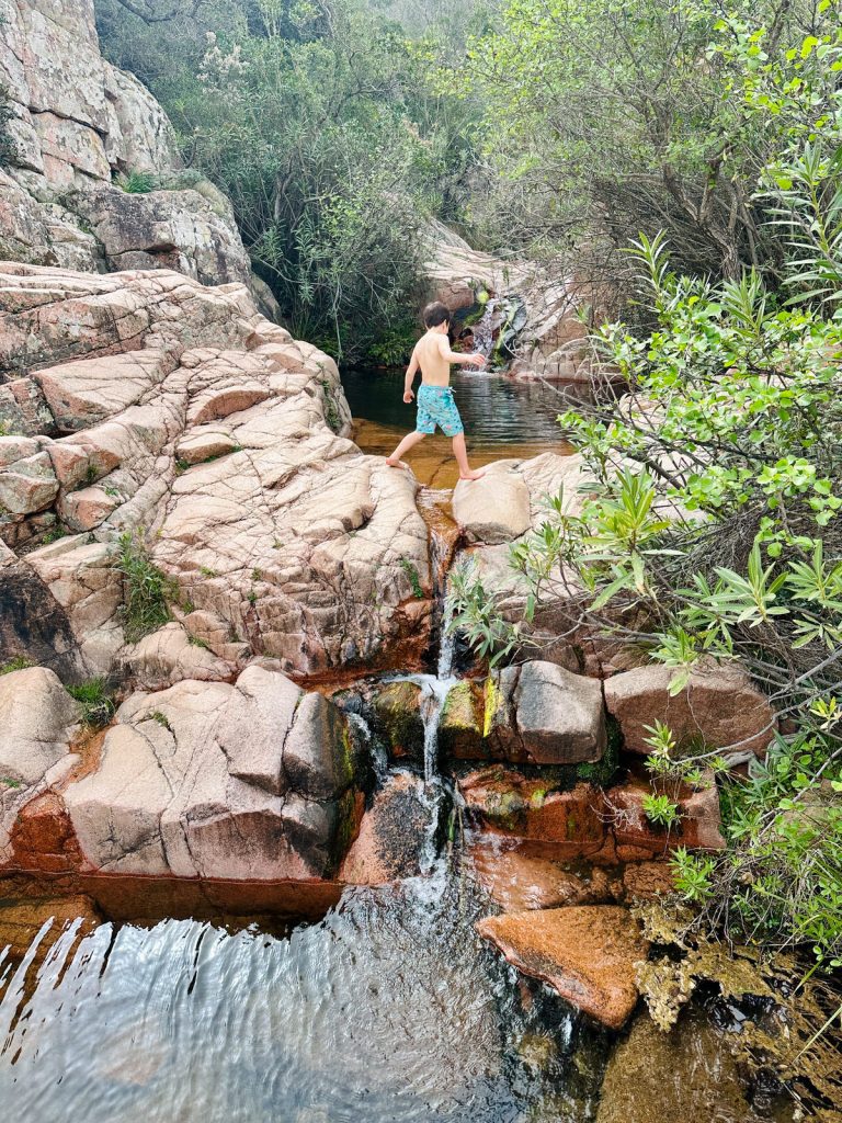 Am Ostersamstag gehen wir nach dem Mittagessen zusammen mit der anderen Familie eine kleine Wanderung zu Gumpen und einem Wasserfall, die wir im Herbst 2021 schon mal gegangen sind, da haben wir’s aber nicht gefunden und es war kaum Wasser im Bach. Dieses Mal hatten wir mehr Glück und eine bessere Beschreibung und die Gumpen sind echt schön. Gut dass niemand in der ersten gleich gebadet hat, denn zwei Gumpen weiter oben „schwamm“ ein toter Fuchs 😵💫. Wir haben dann weiter oben lange Pause gemacht und fast alle haben sich im Wasser erfrischt bevor es zurückging.